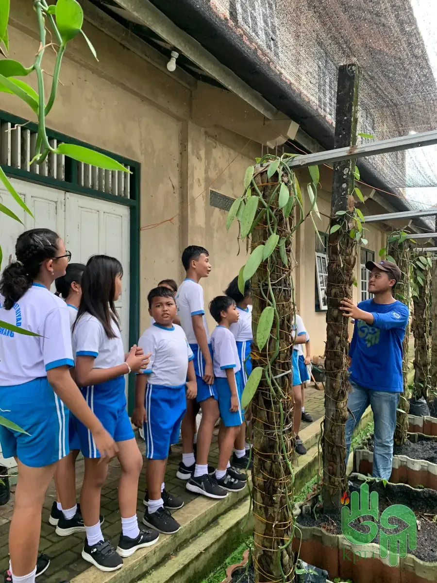 Setelah itu, teman-teman diajak berkeliling Area 1 KPTT Salatiga, melihat green house, tempat pembibitan tanaman, dan bahkan bertemu hewan-hewan ternak seperti sapi, ayam, bebek, dan kambing. Tidak hanya melihat, mereka juga senang sekali saat memberi makan langsung hewan-hewan tersebut.