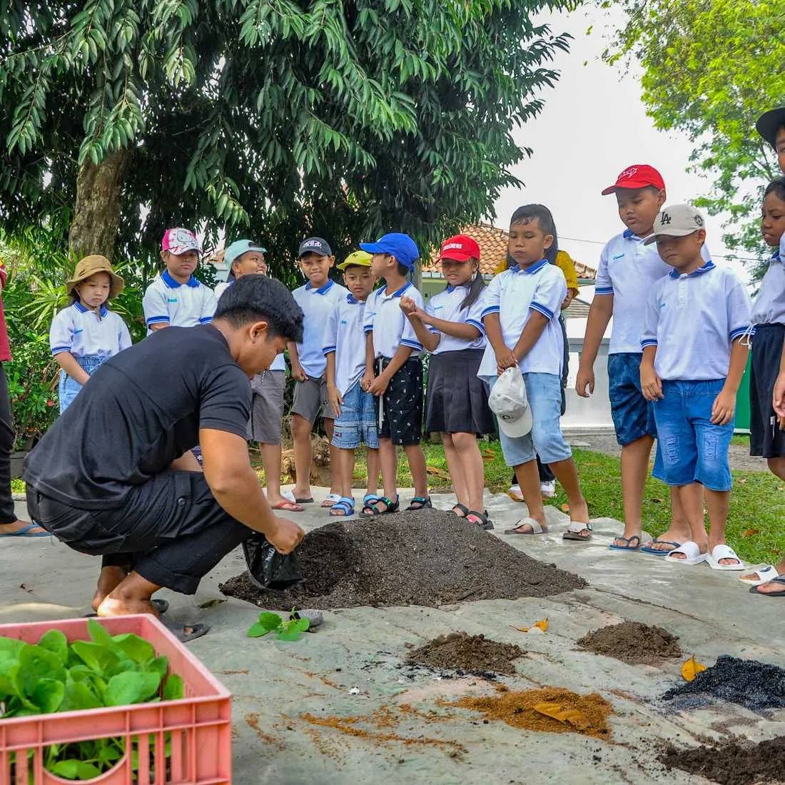 Tak hanya berkeliling menyaksikan kegiatan pertanian, teman-teman juga mengikuti kegiatan overplanting. Mereka berkesempatan untuk belajar langsung tentang pertanian. Mereka diajak memahami komposisi media tanam, dari teori hingga praktik mencampur media bersama staf KPTT yang ramah—mulai dari Mbak Epin, Kak Ivana, hingga Pak Kevin dan tim lainnya. KPTT memang dikenal bukan sekadar tempat belajar teori, tapi juga mengajarkan praktik lapangan yang menyenangkan. Dengan lingkungan asri, program inovatif, serta tim pendamping yang berpengalaman, kunjungan seperti ini sering jadi momen tak terlupakan bagi siapa pun yang ingin mengenal pertanian dan peternakan dari dekat, sambil merasakan serunya belajar di alam terbuka.