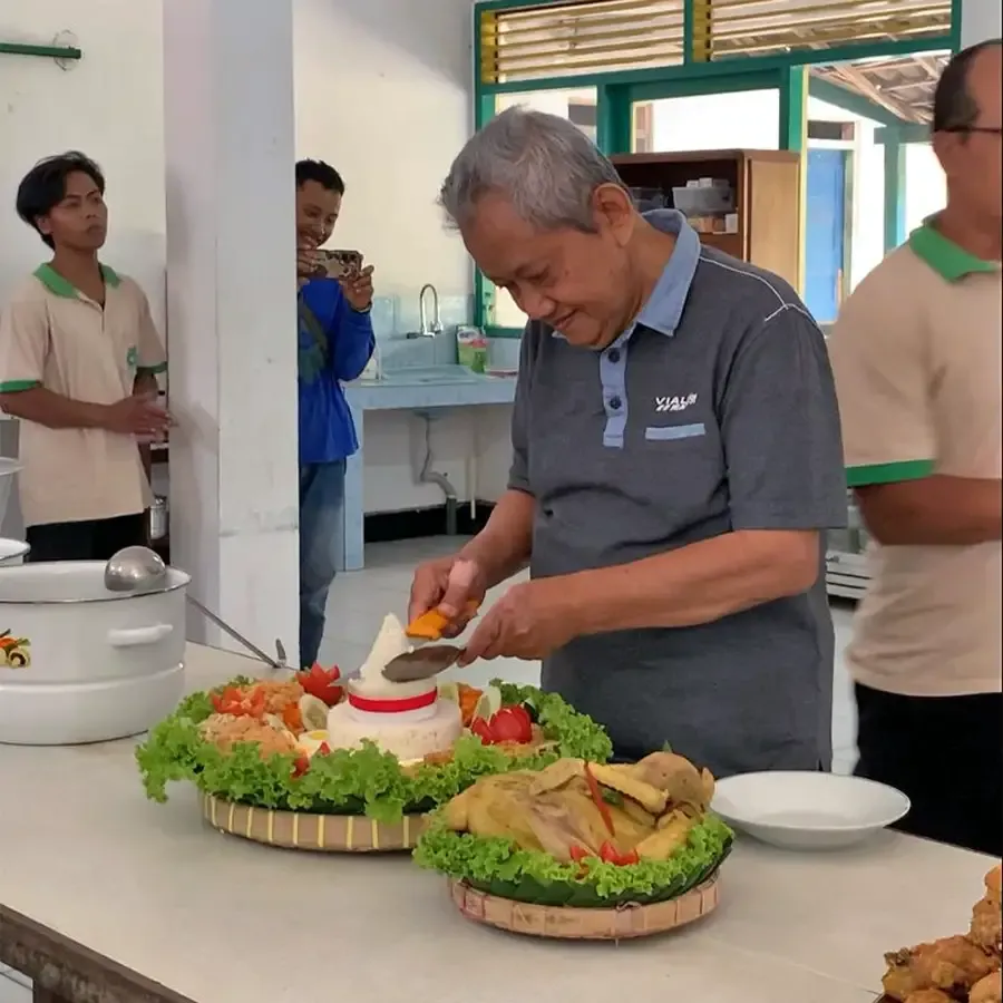 Acara ditutup dengan makan siang bersama seluruh staf dan karyawan, yang menambah kehangatan suasana kekeluargaan di lingkungan KPTT. Sebagai simbol rasa syukur, prosesi potong tumpeng turut digelar. Potongan pertama diberikan kepada Ibu Siti, salah satu staf yang bertugas di dapur KPTT Salatiga. Ibu Siti memiliki peran penting dalam memastikan kebutuhan konsumsi untuk staf, tamu, serta peserta kursus di KPTT agar selalu terpenuhi setiap harinya. Gestur ini menjadi bentuk penghargaan bagi dedikasi dan kerja keras Ibu Siti, juga sebagai apresiasi atas peran seluruh staff dan karyawan KPTT lainnya yang telah berkontribusi besar bagi keseharian organisasi.