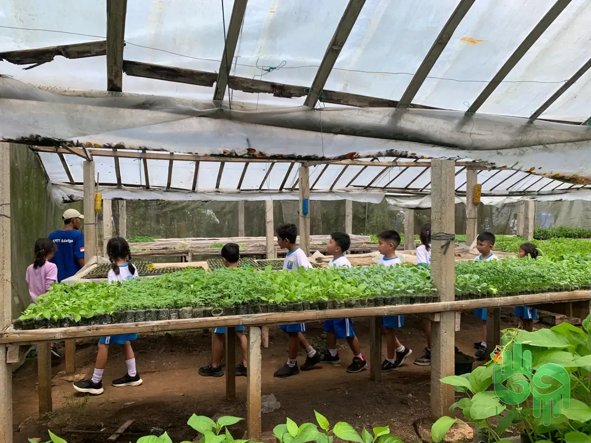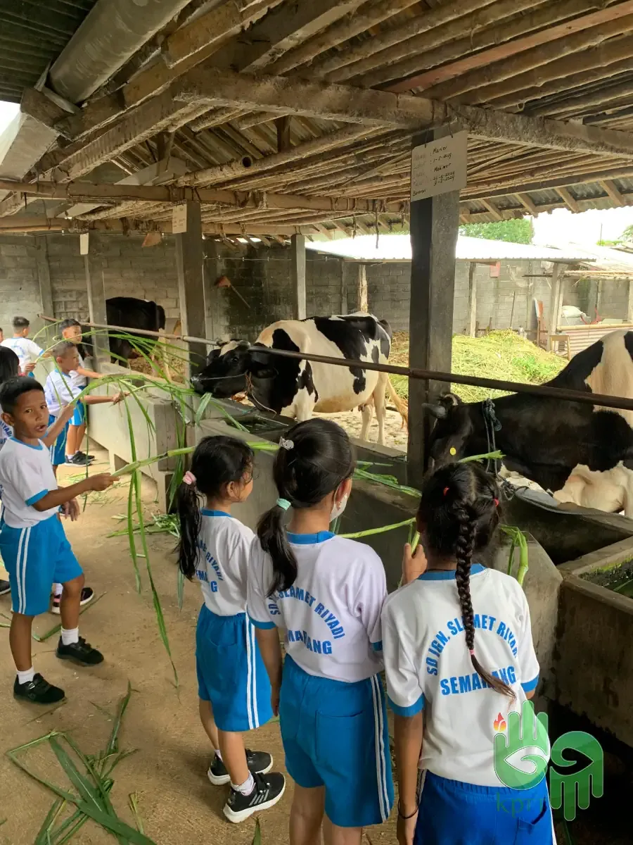 Setelah itu, teman-teman diajak berkeliling Area 1 KPTT Salatiga, melihat green house, tempat pembibitan tanaman, dan bahkan bertemu hewan-hewan ternak seperti sapi, ayam, bebek, dan kambing. Tidak hanya melihat, mereka juga senang sekali saat memberi makan langsung hewan-hewan tersebut.